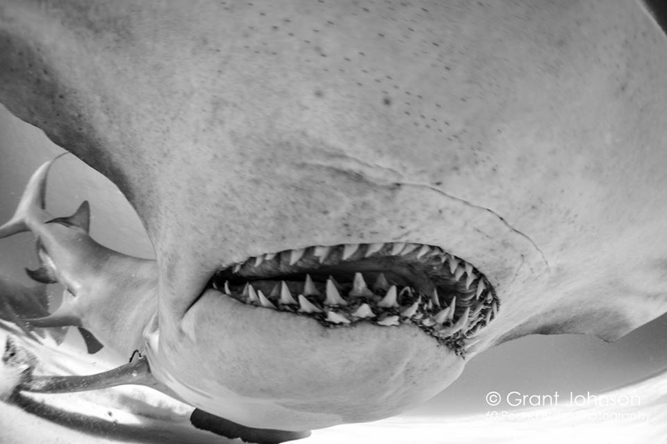 Of all the words that have been devalued and diminished by overuse over the last decade, ‘AWESOME!!!’ must rank high in the top 10. Maybe it’s even made it to number 1. Awesome! Even in the wildest reaches of hyperbole, the offer of a Kalik can never truly be awesome. Nor can a kind and delightful gift. There’s no need to add more examples, because the photos that follow show something that really is awesome in it’s true meaning: the giant hammerhead shark at close – and very close – quarters. Grant Johnson takes astounding wildlife photos in Bimini and far beyond. Take the time to have a look at his page ’60 POUND BULLET’. Now let’s move on to ‘awesomely awesome…’