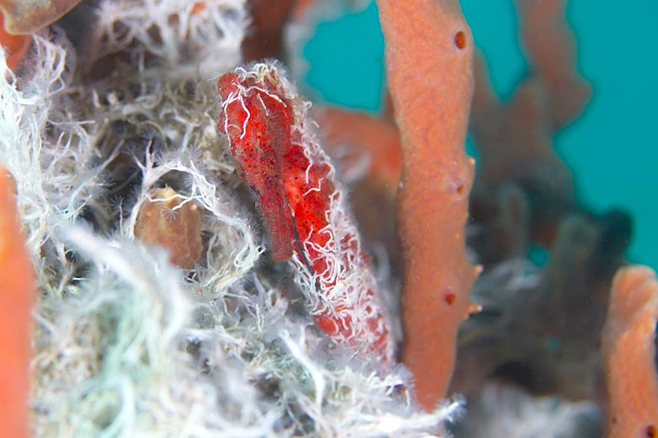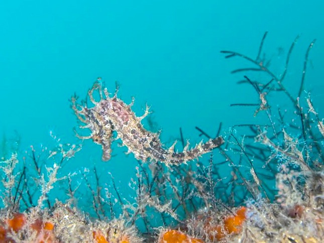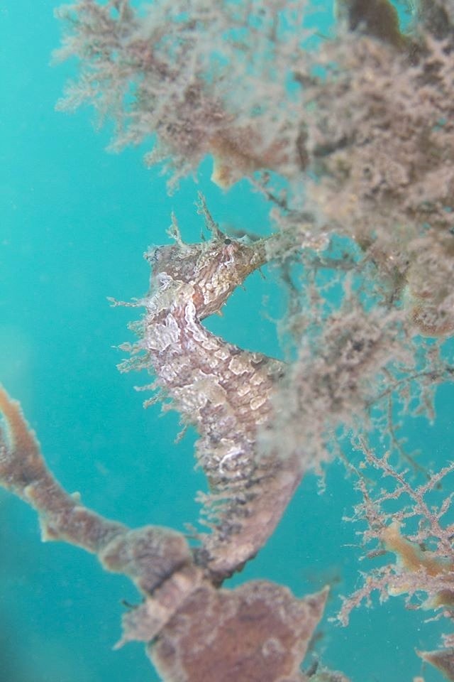 Sometimes they are easy to see. The header image shows an orange seahorse curling its tail round green weed on pink coral – hard to miss. Yet sometimes it may be quite difficult to see the little creatures against their chosen background.