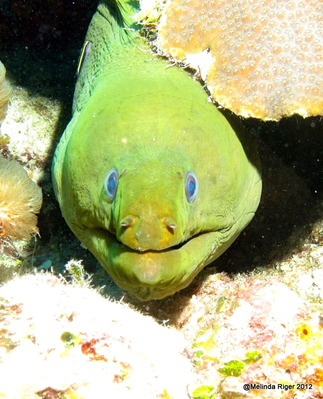 Photo Credits: Melinda Riger / Grand Bahama Scuba, except for the feeding photo (cheers, Samantha Regan), the ‘specimen’ from Tomas Willems (Wiki) and my two noted above