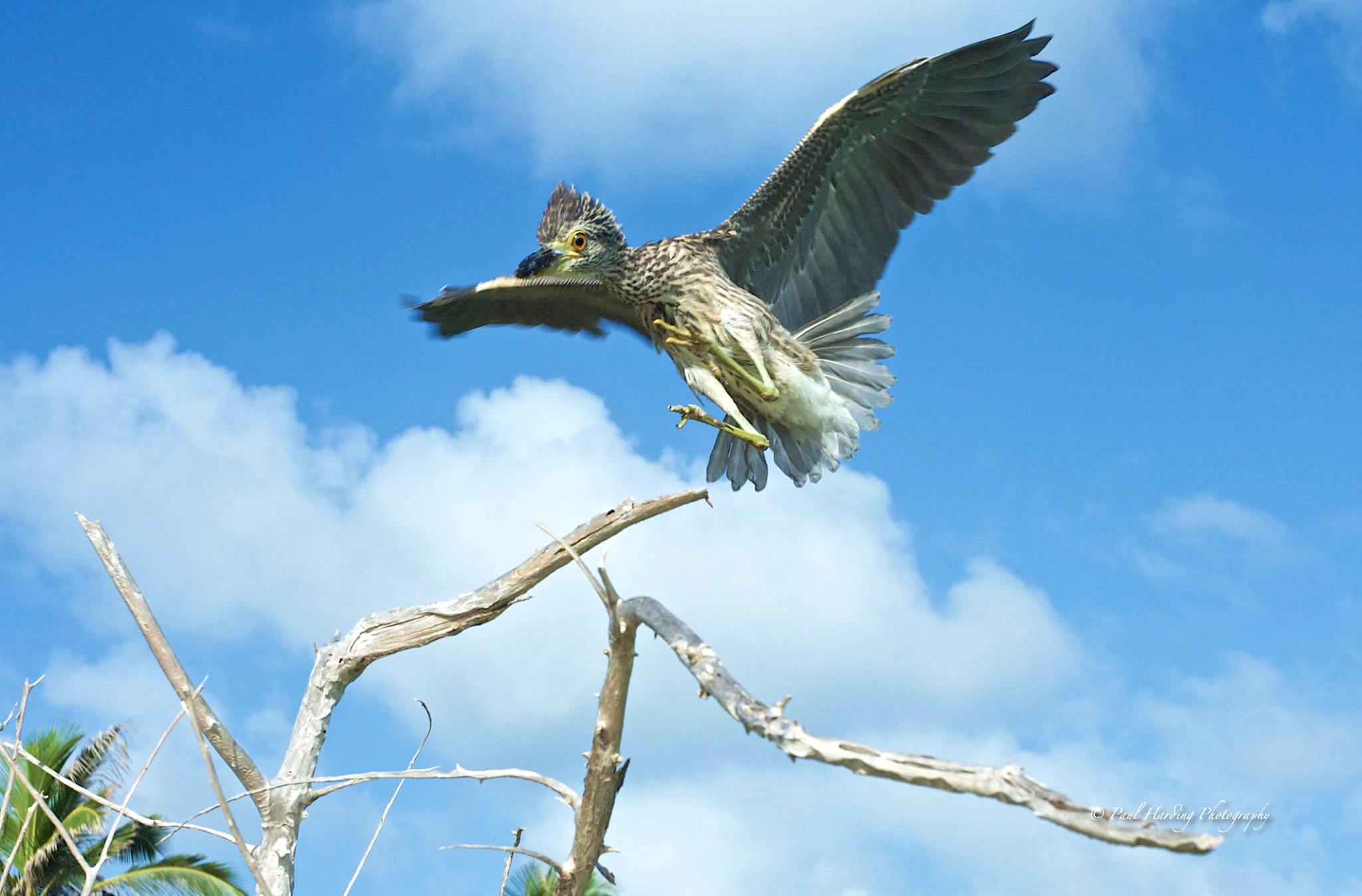 “Yesterday morning Big Bird was placed lovingly into his custom-made box and transported by ferry to his new residence – the wilds of Blue Lagoon Island where upon arrival at a chosen spot, we were met by no less than 13 other juvenile Night Herons exactly his age! They all gathered nearby as we released our baby and watched him take his first steps in sand and tackle longer flights. It was such a relief to see him appear so comfy in his new home and he blended into his surrounds perfectly, sporting his best hair-do. Heartfelt thanks to Kelly Meister, John McSweeney and the island crew for helping us put Big Bird in the best possible wild situation…”