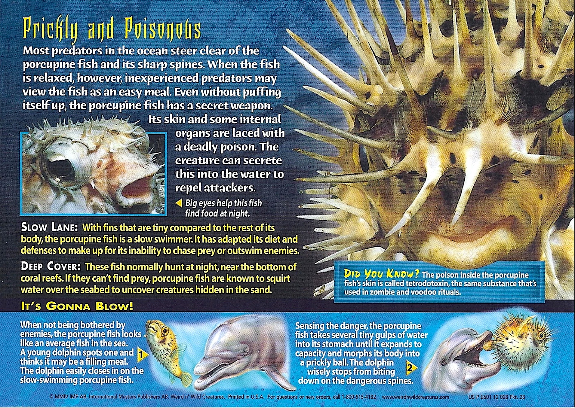 This series of creature cards is produced by the excellent people behind the weirdly spelled wierdnwonderful project. They are essentially ‘knowledge cards’, produced with informative humour. I have featured a number of extraordinary creatures in my WTF? (What’s That Fish?) series, and many were, I later discovered, already featured in the cards. I tried to distil the essential weirdness and the most important aspects of each creature from my research. Annoyingly, I often found that the cards did it better, and with equal or better amusement value… The only thing they lack (but which I am fortunately able to provide) are the images to go with the factoids.